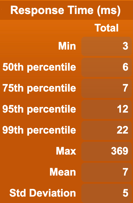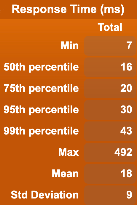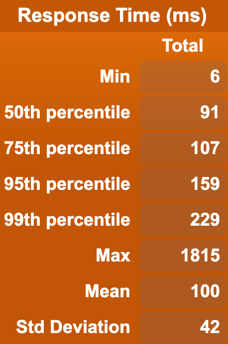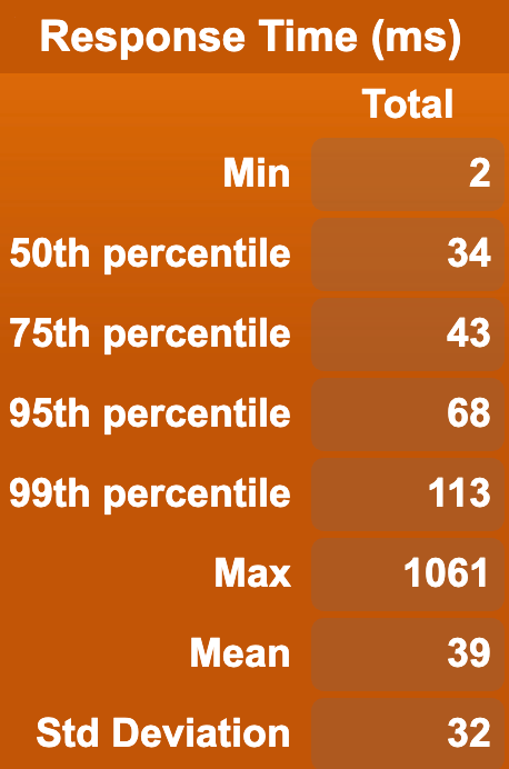 From the above, we can see that the API performs pretty well at a reasonable level of concurrency for our setup.